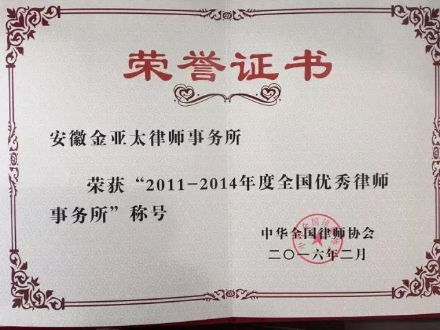 金亞太是安徽省人民檢察院、安徽省公安廳、合肥市人民檢察院、合肥市公安局關(guān)于律師執(zhí)業(yè)權(quán)益保護(hù)的執(zhí)法監(jiān)督定點(diǎn)聯(lián)絡(luò)單位;是安徽省僅有的三所全國(guó)211重點(diǎn)綜合大學(xué):中國(guó)科技大學(xué)管理學(xué)院、安徽大學(xué)法學(xué)院、合肥工業(yè)大學(xué)人文經(jīng)濟(jì)學(xué)院本科和碩博研究生定點(diǎn)培養(yǎng)和實(shí)習(xí)基地。