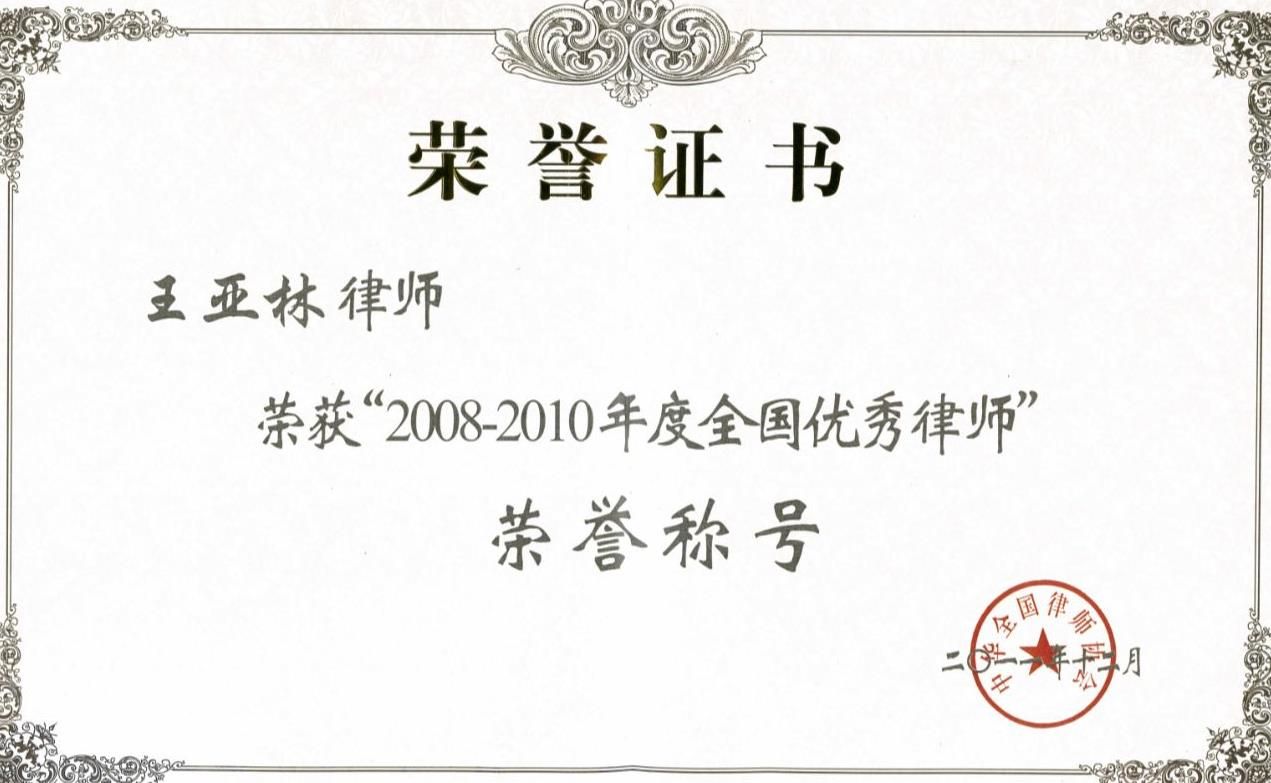中華全國(guó)律師協(xié)會(huì)授予王亞林等200名律師全國(guó)優(yōu)秀律師稱號(hào)。
