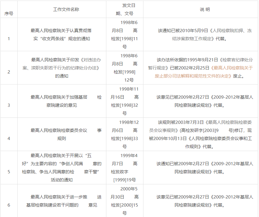 最高人民檢察院對2008年底以前制發(fā)的工作文件進(jìn)行了集中清理?,F(xiàn)決定: