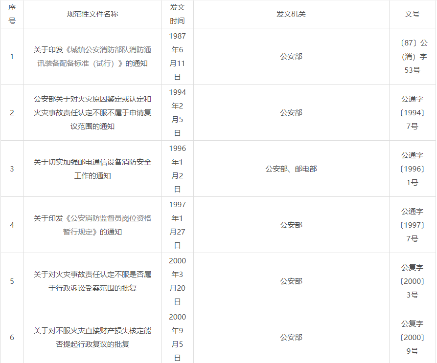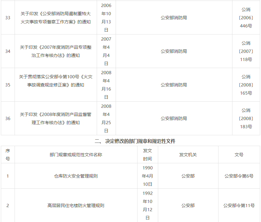 公安部廢止和修改消防工作部門規(guī)章及規(guī)范性文件目錄