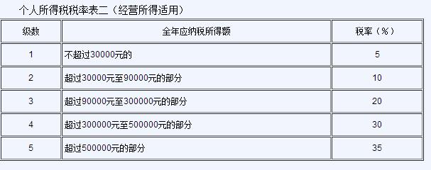 (二)經營所得,適用百分之五至百分之三十五的超額累進稅率(稅率表附后);