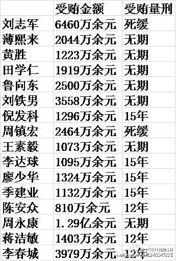 李春城判得有多輕?可以看下圖,我統(tǒng)計發(fā)現(xiàn),十八后一共有16名省部級官員和國企管理人員被判受賄罪(湖北省政協(xié)原副主席陳柏槐正在二審,尚未判決)。李春城、蔣潔敏和陳安眾是被判得最輕的,他們的受賄金額分別是3979萬、1403萬、810萬。